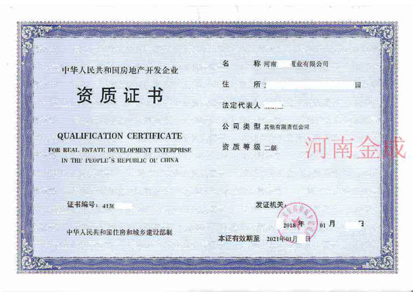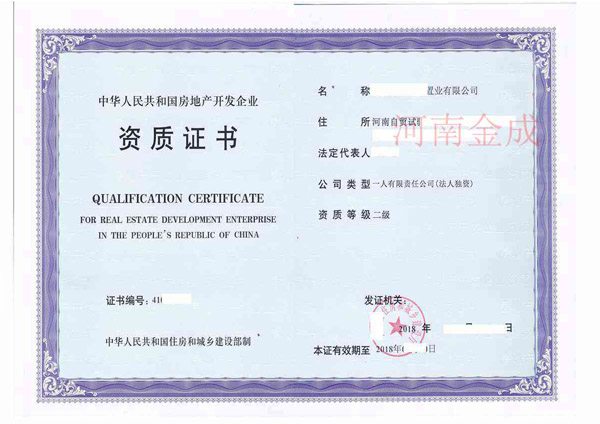 • 房地產(chǎn)二級(jí)資質(zhì)證書