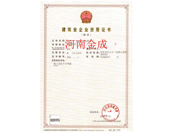 • 建筑業(yè)企業(yè)資質(zhì)證書正副