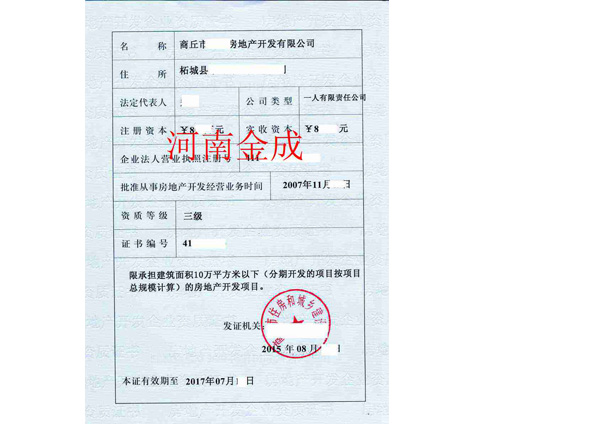 • 房地產(chǎn)三級(jí)資質(zhì)證書