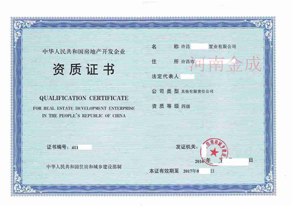 • 房地產(chǎn)四級(jí)資質(zhì)證書